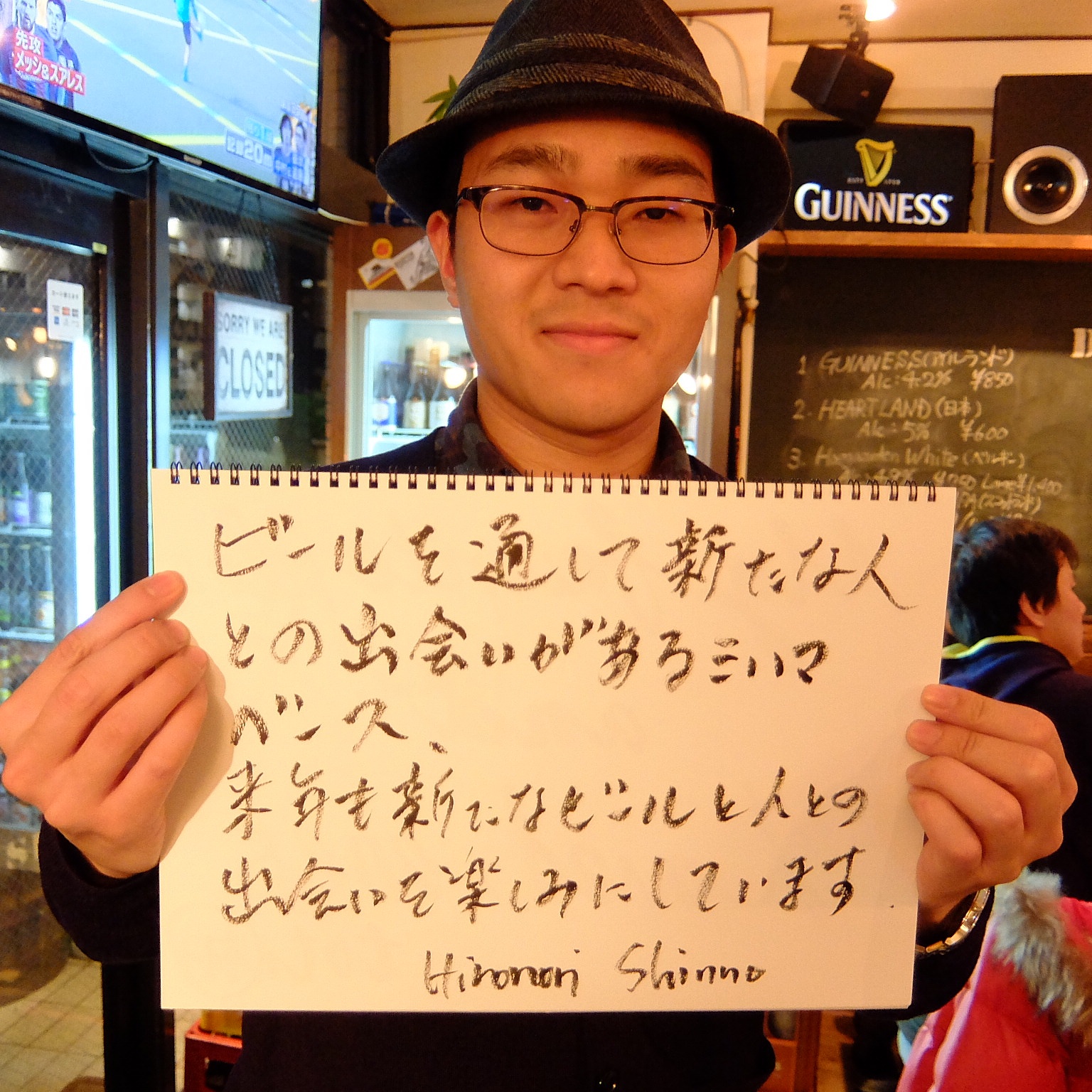 それでは本日も8種類の樽生ビールと100種類のボトルビールで皆さまのご来店をスタッフ一同、心よりお待ちしております。